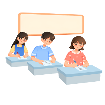 扁平化插画风格,以学习为主题,两个充满活力的学生坐在一本巨大的绿色翻开的书本上,男孩穿着蓝色背带裤和黄色衬衫,头戴蓝色发带,双手高举;女孩穿着粉色连衣裙和白色开衫,扎着双马尾,挥舞着右手,周围漂浮着红色铅笔、紫色三角尺、黄色星星、绿色笔记本和橙色毕业帽,整体色彩明快活泼,构图饱满,线条简洁流畅,充满青春学习的欢快氛围。