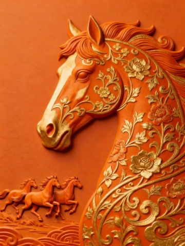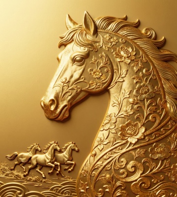 鎏金浮雕风格的马首,以描边线条勾勒出中式古典韵味,双色设计融合金属质感,尽显奢华与优雅。