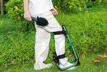 两位白发老人并肩散步的背影,老爷爷穿着深色短袖上衣和浅色长裤,左手牵着一条大型浅色犬的牵引绳,老奶奶穿着浅色长袖上衣和同色系长裤,右手轻轻搭在老爷爷的左臂上,他们走在一条铺着石板的小路上,小路两旁是茂密的绿色树木和低矮的灌木丛,阳光透过树叶洒下斑驳的光影,营造出温馨、宁静、岁月静好的氛围,画面色彩明亮柔和,光影层次丰富,具有清晰的写实摄影质感,背景为自然公园场景。