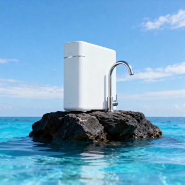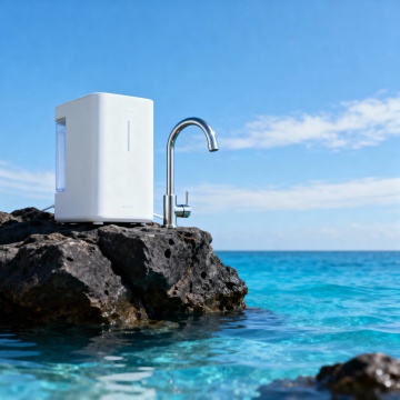 现代化厨房场景,白色大理石台面,嵌入式不锈钢厨具,台面上摆放着一台智能咖啡机作为展示产品,阳光从右侧窗户洒入,照亮台面和产品,整体色调明亮干净,细节清晰