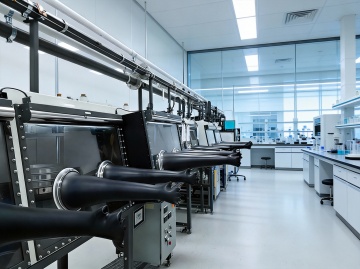 极简主义构图,全景视角下的未来生物实验室,纯净的白色与冰川蓝构成的无菌空间,墙面采用无缝纳米陶瓷板拼接,地面是反光率达95%的超白玻璃材质,顶部悬浮着呈几何阵列排列的环形LED光源,光线均匀地洒落在所有表面。左侧是模块化悬挂式试剂架,透明亚克力容器中装着梯度蓝色的生物试剂,下方嵌入式实验台配备隐藏式智能控制面板。中央区域放置着一台六边形结构的量子分析仪器,金属外壳呈现细腻的哑光钛白色。右侧墙面上的生物安全柜采用隐形门设计,与墙面融为一体。整个空间无任何视觉噪音,连空气都仿佛凝固在绝对静止中,只有试剂瓶上的分子结构标签在微光下隐约可见,完美平衡了科技冷感与空间美学,为内容展示提供极致洁净的背景画布。