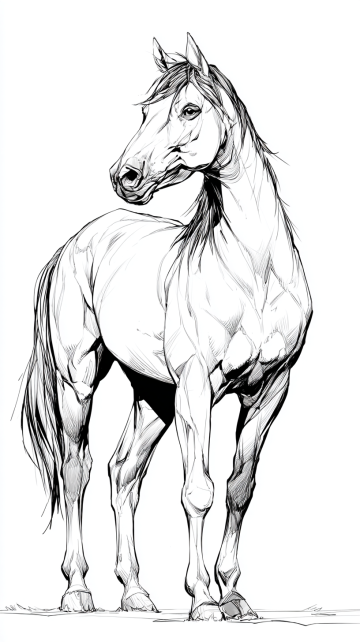 水墨风白描马,单色线条勾勒古典优雅,肌理体积感十足,文艺气息浓厚,尽显东方美学韵味。