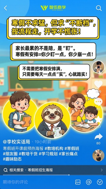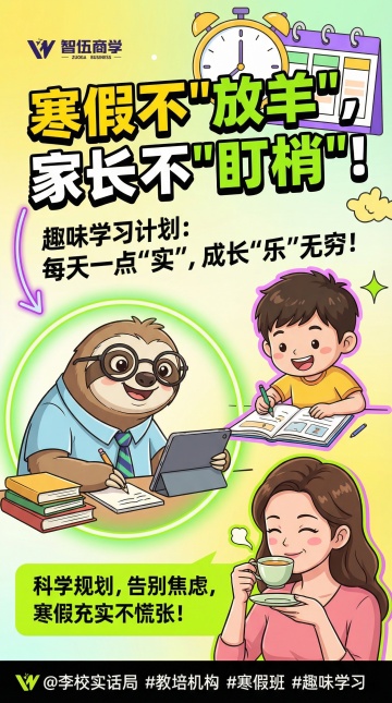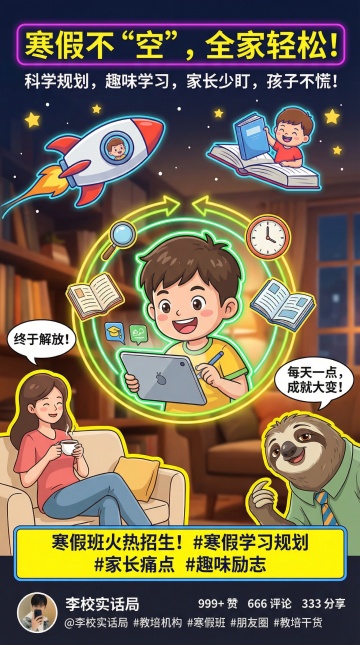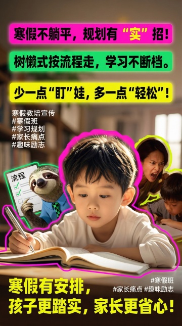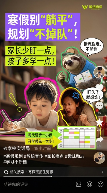 扁平风设计融合鎏金元素,大字风标题强化促销感,印刷质感提升专业度,喜庆红橙色系传递节日氛围,励志文案激发家长期待。