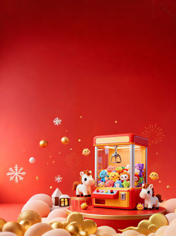 软3D风格抓娃娃机,毛发生长质感搭配萌趣动物,梦幻色彩营造可爱欢乐氛围,双11促销主题,趣味十足。