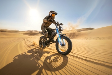 雪域驰骋,实景感与科技感交融,机能风电摩破雪而行,金属质感车身搭配粒子飞溅光影,展现酷炫动感与宽阔视野。
