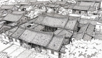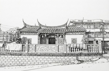 水彩插画风,清新古典,绿树掩映古桥,江南水乡韵味。