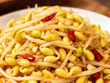 质朴中式风格,实景拍摄花生与豌豆,自然光线营造温馨氛围。