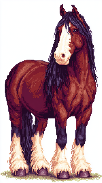 像素风马匹插画,融合复古与质朴感,呈现温暖色调的卡通质感,体积感十足,唤起怀旧温馨氛围。