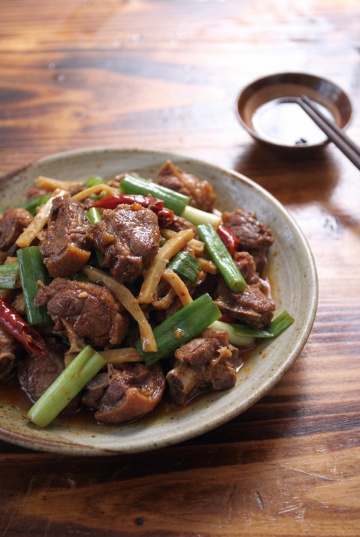 清新中式实景,豆腐配肉香,绿叶点缀,自然光下尽显家常美味。
