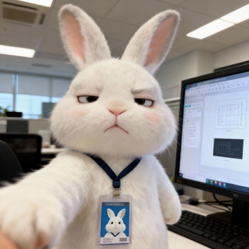 软3D风卡通马戴眼镜办公,拟人化设计融合清新趣味感,毛发生长细节精致,现代商务场景中展现幽默创意。