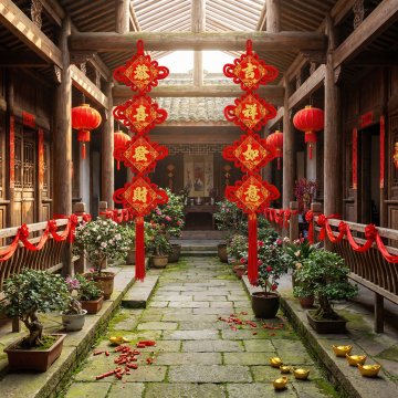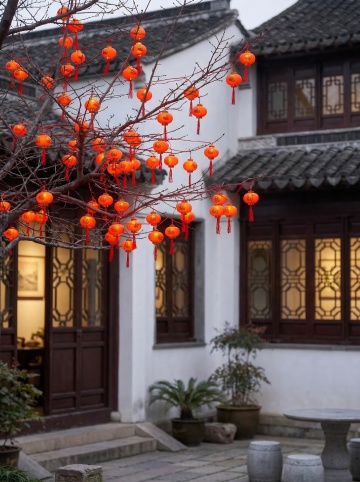 古典中式建筑,水墨风设计,红木与青瓦相映,庭院静谧,尽显东方韵味。