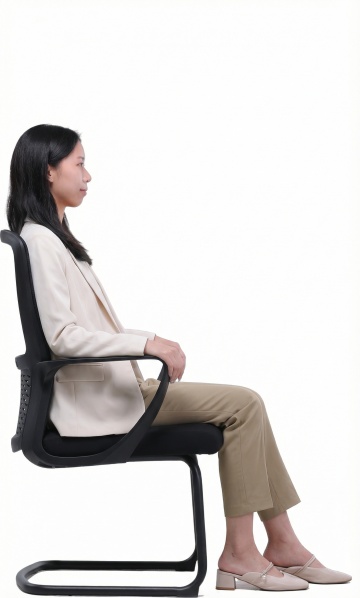 提示词 外国女生,侧躺,人体工学椅,悬空,横屏,看得见整个人,能看见椅子和人的脚,双手向脑后举起来