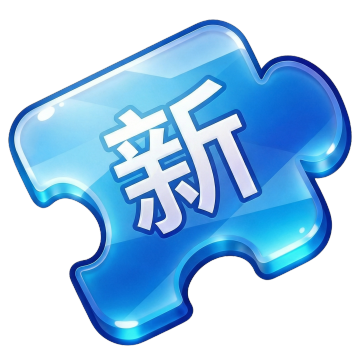 一个具有强烈金属质感的圆形徽章设计,采用深蓝色作为主体颜色,表面有细腻的光泽和高光处理,边缘有一圈稍浅色调的描边,右下角带有一个向外翻折的箭头形状装饰,徽章中央上方有两颗五角星,中间是英文单词“NEW”,下方是中文文字“全新升级”,字体为稳重的黑体,整体呈现出精致的3D立体效果,光影过渡自然,背景为纯白色,无任何其他元素干扰。
