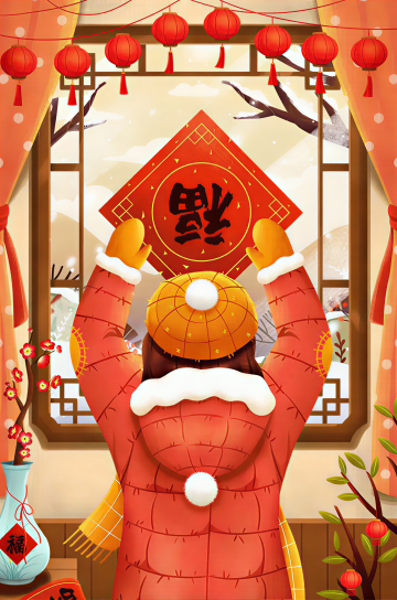 国潮风插画,拟人化孩童手持灯笼嬉戏雪中,屋内全家包饺子,暖黄灯光映衬喜庆温馨,水彩质感与剪纸元素融合,传递除夕团圆乐。