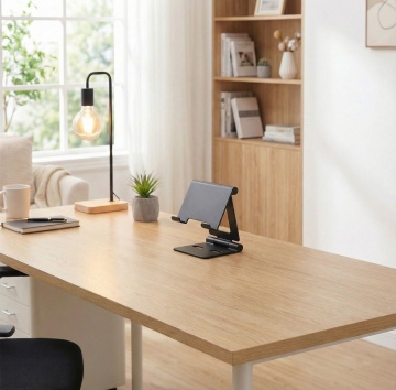 极简主义风格的桌面俯视图,柔和自然光从左上方斜射,营造出明亮干净的氛围,桌面上摆放着不同配色的简约办公用品,包括白色键盘、灰色笔记本、金属色钢笔和一杯冒着热气的咖啡,场景可替换为木质书桌或大理石台面,增加绿植盆栽、简约台灯等不同摆设,整体色调保持清新淡雅,构图采用三分法留白设计,突出物品的质感和空间层次感,适合作为桌面背景使用。