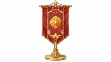 插画风国潮设计,鎏金龙纹盾牌,火焰环绕,尽显神圣与威严。