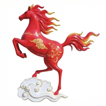 鎏金浮雕风骏马踏云,工笔描边勾勒古典韵味,红金配色尽显中式奢华与民族优雅,唯美复古中透出祥瑞之气。