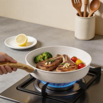 实景感与质朴感交融,木质纹理与柔和暖光营造温馨舒适氛围,轻拟物风设计搭配浮雕质感锅具,现代简约中透出木雕般的细腻,尽显居家烹饪的温暖仪式。