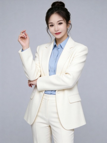 商务感十足的性冷淡风肖像,简约主义构图,面料质感细腻,实景拍摄呈现专业气质。