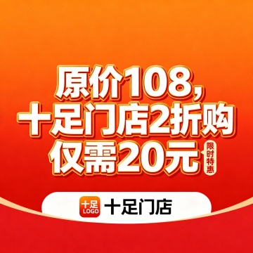 爆炸框搭配描边文字,强化促销冲击感,橙红主色调与黄色折扣标签营造强烈视觉张力,突出限时五折优惠,兼具卡通感与印刷风质感。