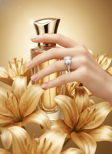 3D轻拟物风格,心形礼盒盛满玫瑰花瓣与香水瓶,柔和粉紫渐变背景,塑料质感与玻璃光泽交织,传递甜蜜浪漫的节日氛围。