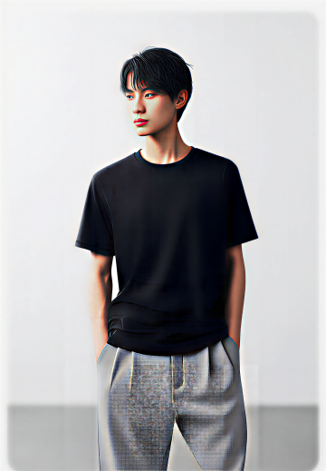 杂志风时尚大片,暖色调毛衣营造舒适感,简约背景突出人物魅力。