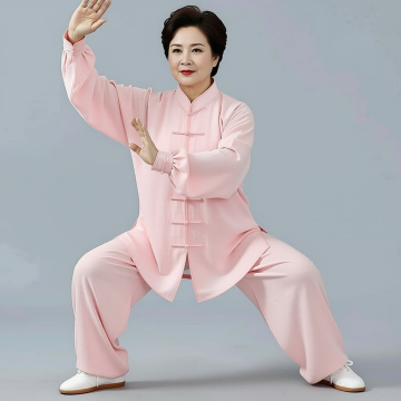 中年男性中式服装形象照,横排纽扣款、全身照、风格休闲。