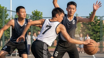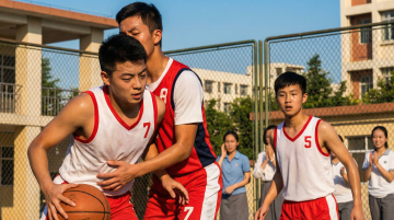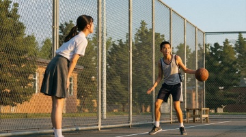 篮球场上的热血瞬间,实景拍摄结合清新动漫风,杂志感十足,青春活力四溢。