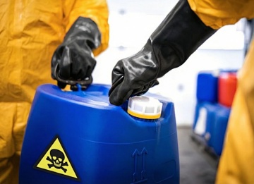 医疗科技感背景,蓝色与白色为主色调,柔和明亮的光线从上方照射,营造出洁净、专业且充满希望的氛围,画面中可见戴着白色乳胶手套的手正拿着装有黄色透明液体的玻璃试管,试管内液体有清晰的刻度,背景中隐约可见多个不同形态的玻璃器皿和实验设备,叠加着由六边形、线条、数据代码和分子结构组成的半透明科技感图形元素,整体呈现出高精度的3D渲染质感,光影过渡自然,细节丰富,构图以手部和试管为视觉焦点,背景元素层次分明,具有现代医疗实验室的视觉特征和科技感设计风格。