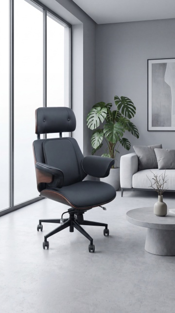 黑红双色设计,金属质感骨架,重拟物风造型,科技感与商务感融合,酷炫现代电竞椅。
