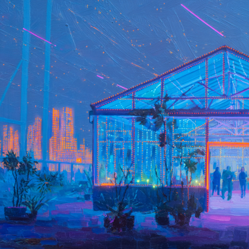 赛博朋克风未来都市,霓虹光影交织,粒子流缠绕高楼,飞行器划破云雾,虚拟现实与科技感碰撞,冲击力十足。