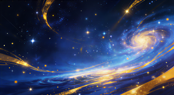 深蓝色渐变背景,深邃夜空般的深色基调,右下角有金色发光线条组成的流动波浪形态,线条细腻且带有闪烁光点,整体呈现出科技感与未来感的抽象流体设计,画面中散布着细小的白色星光粒子,营造出神秘而宁静的氛围,光影柔和,色彩对比鲜明,金色与深蓝色形成优雅的视觉平衡,具有高级感的渐变过渡和光滑的质感表现。