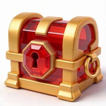 一套6张的系列素材集合,每张素材均为规整排布的单一宝箱元素图案,宝箱设计样式各异但整体造型简约现代,内部盛满闪耀的金色宝石,宝箱主体为红色与金色搭配,金色边框带有简约装饰纹路,背景为纯色,无任何文字、logo和水印,整体风格统一,画面明亮,带有金色的光芒和星星效果,营造出华丽、喜庆的氛围。