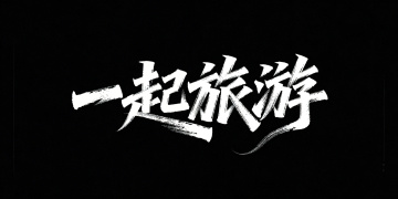 提示词 文艺手写字体“一起旅游”,毛笔手写风格,极强的艺术写作风格,视觉震撼,笔画增加水墨笔刷效果,笔画巧妙延长设计变形,黑底白字