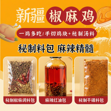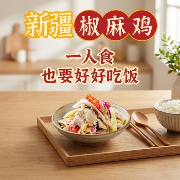 中式实景风格,大字风突出“鲜鸡现炒”,热气腾腾,色香味俱全。