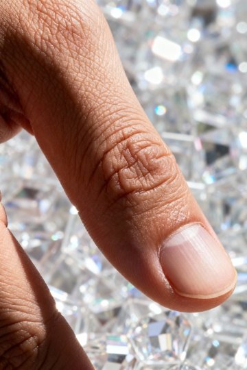 一张高度写实风格的摄影作品,画面主体为一只男性的手,正做出清晰的食指指向前方的手势,手指关节和肌肉线条分明,皮肤纹理、指纹细节及指甲的自然光泽都得到精确呈现,手部位于画面中央偏下位置,背景为纯白色,光线从斜上方均匀照射,在手部边缘形成柔和的阴影,整体构图简洁有力,视觉焦点高度集中于手势本身,传达出明确的指示性和引导性,无任何文字、LOGO、二维码或多余装饰元素,画面干净利落,信息传达直接高效。