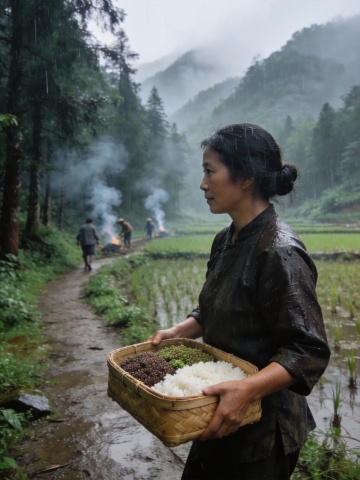 积雨空林烟火迟,蒸藜炊黍饷东菑
