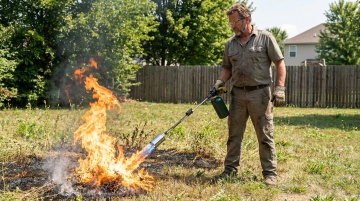 写实风格美食摄影,特写镜头下一位穿着白色围裙的厨师正在户外露营环境中烧烤,左手握着几串滋滋冒油的烤肉串正从炭火上拿起,右手也持着烤串,烧烤架上摆满了各种烤肉和烤蔬菜,火焰熊熊燃烧,升腾起袅袅青烟,肉质呈现出诱人的焦香色泽和清晰纹理,周围是自然的露营场景,有帐篷、树木和户外桌椅,整体色调温暖,光影对比强烈,突出食物的质感和烧烤的烟火气,营造出户外露营烧烤的热闹、惬意氛围。