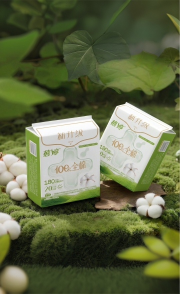 清新自然风,双色绿白设计,轻拟物棉朵点缀,实景感森林背景,简约主义包装,展现全棉材质的舒适与柔和。