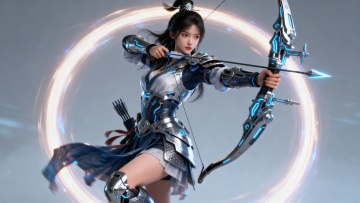 梦幻唯美的中式古典美人,身着红金华服于云海山巅翩然起舞,3D虚拟现实风格融合粒子飘散与光影流动,浪漫意境跃然眼前。