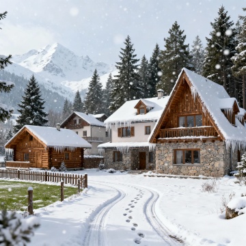 雪落山居,实景感与光影交织,静谧中透出温馨,柔和色调渲染质朴冬景,水墨风与油画风交融,唯美而文艺。