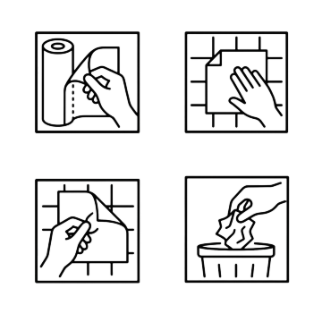 极简主义风格卫生间标识系列,纯白纯色背景,六个完全不同造型的卫生间元素图标规整排布。每个图标均采用黑色剪影式设计,保持简洁的线条感和符号化特征,包含马桶、洗手池、淋浴喷头、浴缸、卫生纸、洗手液等核心卫生间元素,每个图标造型独特且识别性强,整体布局采用2x3或3x2的网格状规整排列,视觉上保持高度统一的极简美学风格。
