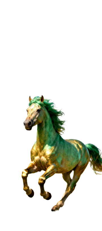光影交织的描边风骏马,鎏金线条勾勒出梦幻与优雅,霓虹光晕流动于虚拟自然之中,尽显科技感与酷炫之美。