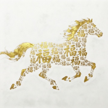 鎏金浮雕风骏马,工笔描边勾勒祥云瑞气,国潮复古中透出奢华喜庆,福字点缀,尽显中式年味。