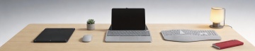 极简主义风格的桌面俯视图,柔和自然光从左上方斜射,营造出明亮干净的氛围,桌面上摆放着不同配色的简约办公用品,包括白色键盘、灰色笔记本、金属色钢笔和一杯冒着热气的咖啡,场景可替换为木质书桌或大理石台面,增加绿植盆栽、简约台灯等不同摆设,整体色调保持清新淡雅,构图采用三分法留白设计,突出物品的质感和空间层次感,适合作为桌面背景使用。