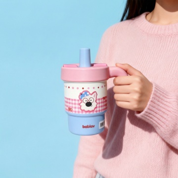 开学季插画风水杯,可爱卡通小狗设计,轻拟物风格,营造温馨校园氛围。