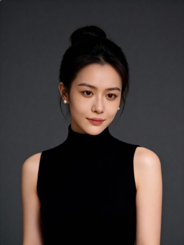 极简单色设计,黑色高领无袖针织展现面料质感,搭配珍珠耳饰,营造优雅、商务与时尚融合的性冷淡风视觉。