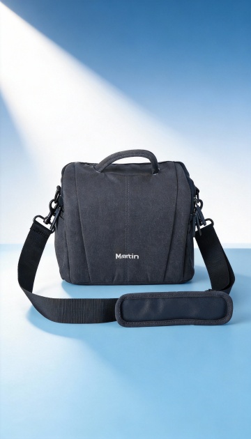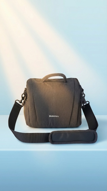 简约主义风格,柔和色调背包置于温暖阳光下,营造舒适感与宁静氛围。