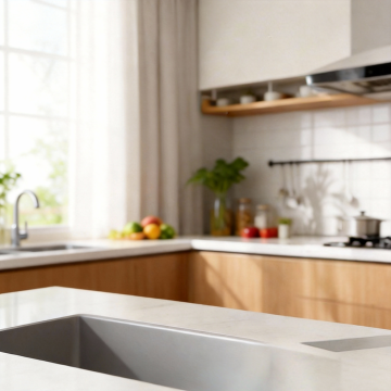 日系风厨房场景,轻拟物设计融合面料质感,柔和色调营造舒适氛围,实景感呈现质朴生活美学。