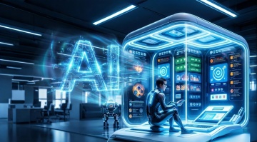 未来感3D机器人,拟人设计,金属质感,科技界面,展现智能时代魅力。